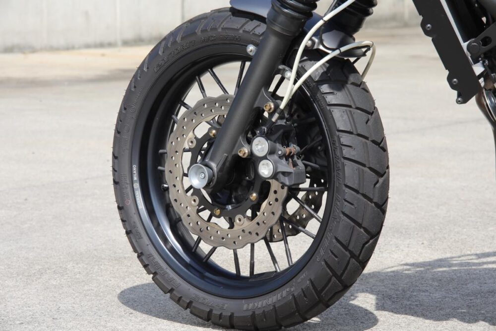 前後ホイールは古き良き時代のスポーツカーを彷彿させるBORRANIのリムを採用していて、バイクでは通常ありえない太さのワイヤースポークで組まれているのが特徴。このような細かなところに強いこだわりが感じられるのだ。