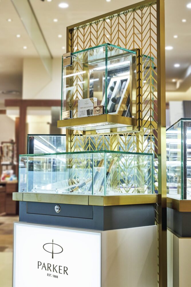世界的に見ても、パーカーとウォーターマンがこれだけの世界観を作っている売り場は無いとのことで、思い入れも特別です。今後の目標は、ここを両ブランドの日本一の売り場にすること。ぜひ気軽にお店にいらしてください。万年筆のことを知りたい、贈り物をしたいなど、皆様の想いをくみ取り、最善の提案をさせていただきます。