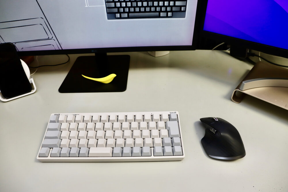 デスクに置いてみた。キーボードの上に余計な文字の刻印がないと、これほど美しいのか! と驚くほどスッキリしている。これで雑念なく文章を書くことに集中することができる。