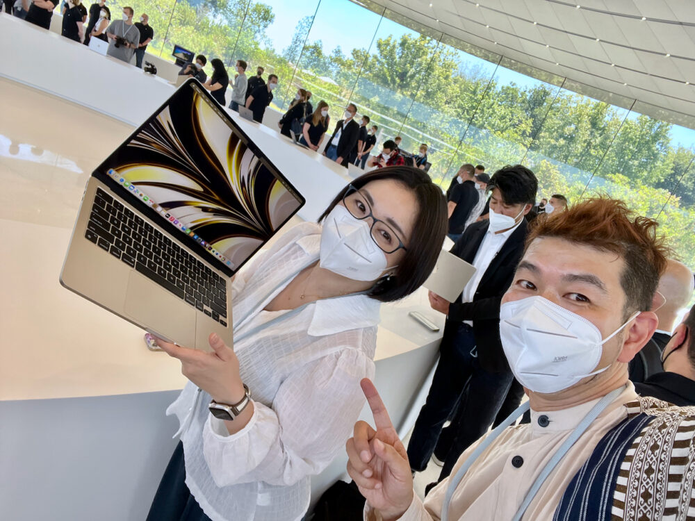 ちなみに、メディアはその後、Apple Parkの南東方向にあるSteve Jobs Theaterに移動。展示された新型MacBook Air(M2)に触れることができた。そして、今週一週間は、世界中の開発者に向けて、新しいツールやテクノロジーについて開設するPlatform State of Unionや、オンラインで質問やレビューを申し込めるレビュー、開発者フォーラムなどが開催される。