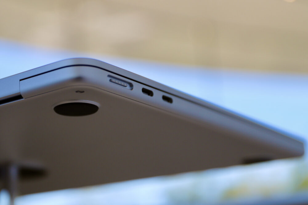 ポートで特徴的なのは、MagSafe アダプターの採用。これにより、Thunderbolt / USB 4ポートを2つともストレージの接続などに使えるようになった。ストレージからストレージへのコピーが、電源供給したまま可能になる。できればSDカードスロットも欲しかったところだが……そこはシンプルな構造を選んだということだろうか。