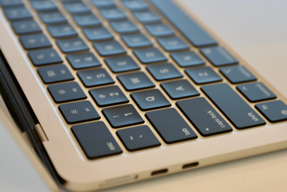 打鍵感はMacBook Pro14/16に近い、バタフライキーボードより少し沈み込みの深いタイプ。こちらの方が好ましいという人が多いだろう。