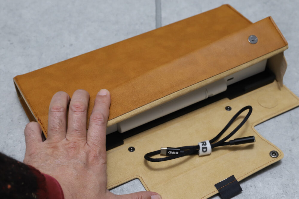 フタの部分には、USBケーブルを挟んでおけるので、バード電子製のUSB-Cケーブルなどを使って有線接続する人にも安心。