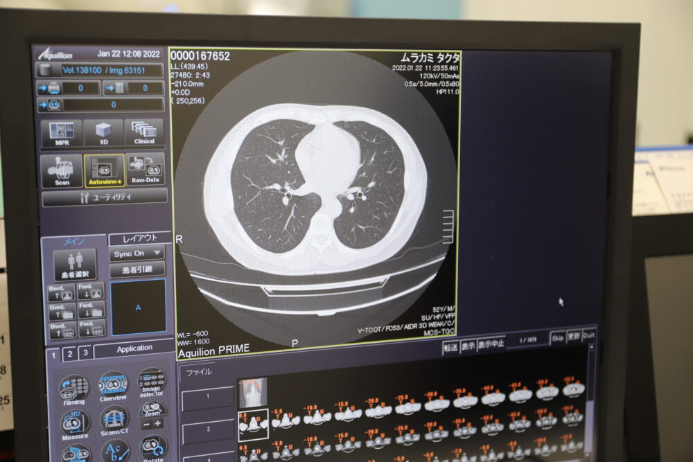 肺の中身が丸見えだ。昨今のニュースで肺の炎症度合などが見られているような画像ですね。自分の身体の中がこうやって見えるって本当に不思議な感じです。