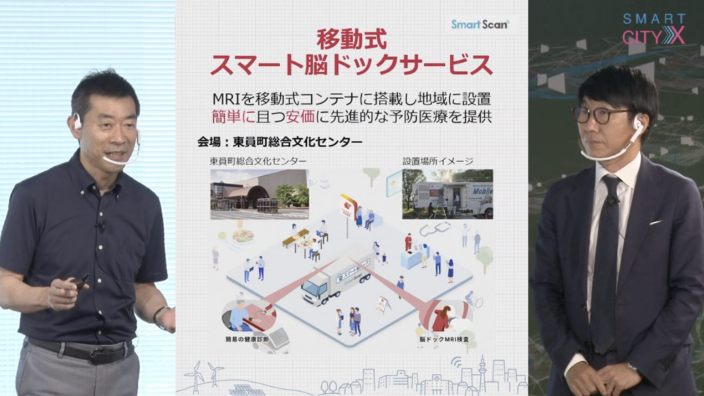 ことの発端は、Scrum VenturesがSmartCityXとして行ったスタジオの取材だった。その中で、出光興産や地方自治体が協力して、これからEVの普及とともに不要になってくる地方のガソリンスタンドの活用事例として、『移動式MRIでの脳ドック』というアイデアがあった。