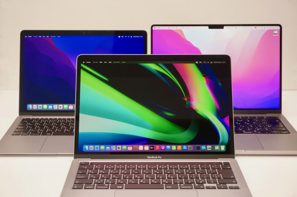簡単に言うと、M2の最初のモデルであるMacBook Pro 13インチと、その下に位置するM1のMacBook Air、上に位置するMacBook Pro 14インチ、M1 Proの一番安いモデルと比較したということになる。