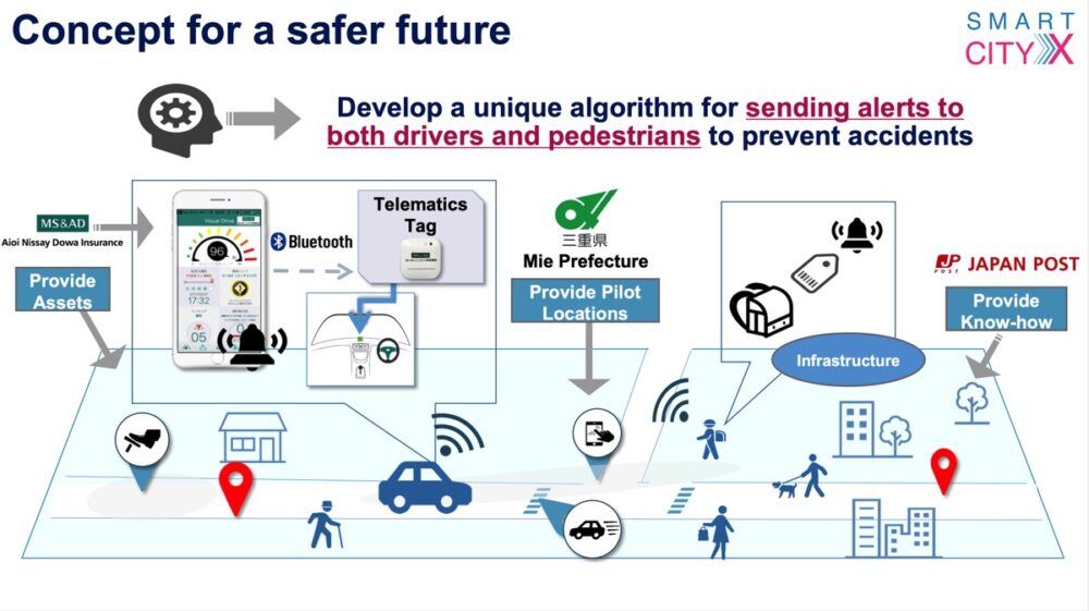 スマホで使うあいおいニッセイ同和損保の運転ログアプリの情報、日本郵便の交通事故に関する知識を、三重県というロケーションで試してみることで、アクシデントの起こる場所、状況などの情報を集約し、事故を減らす試みを行う。