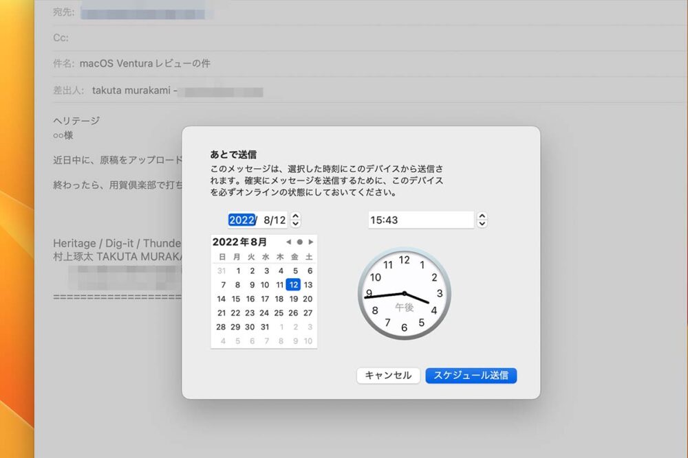 しかし、この『あとで送信』機能の注釈には、『このデバイスを必ずオンラインの状態にしておいてください』とある。これはノートパソコンを使っているユーザーにとっては少々面倒な注文だと思う。