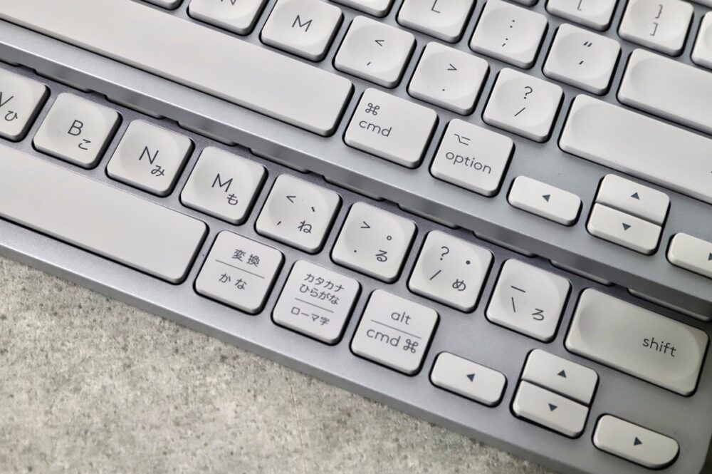 どちらを選ぶかは好みとしか言いようがないが、コンパクトで洗練されたデザインのMX Keys MiniにMac専用/US配列のシンプルなキートップは非常に美しい。