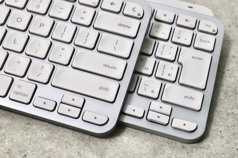 手元にある、MX Keys Mimiの日本語キーボード(Mac専用ではないタイプ)と比較してみよう。
