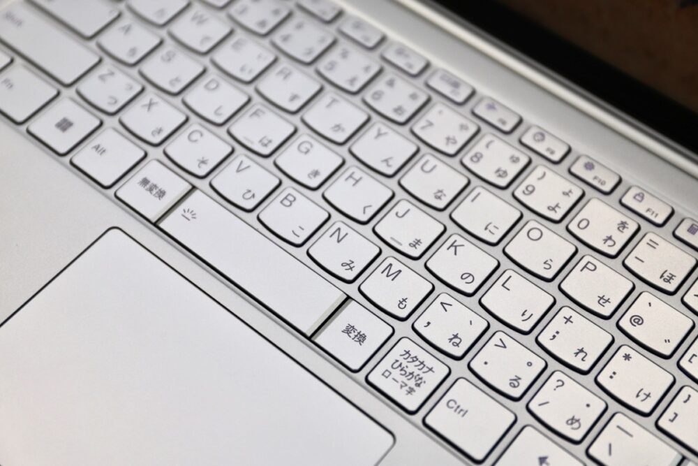キーボードは現行Yogaシリーズで採用されている、キーの下部がカマボコ状になった日本語キーボード。