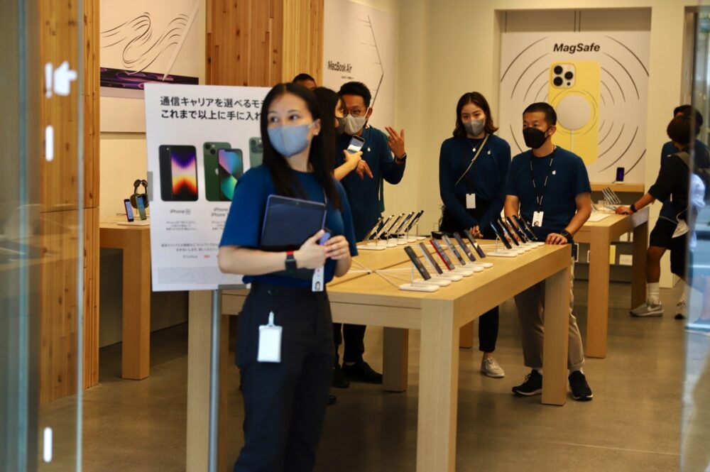 ちなみに、名古屋から来た事情通の人物によると、テーブルや棚などは、Apple Premium Resellerで使われているものと同じ木質、高さのものだという。