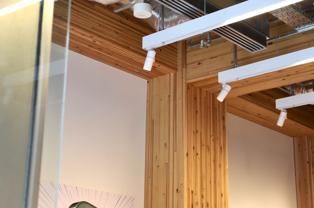 既報の通り、HULIC &New 8は隈研吾建築都市設計事務所がデザイン監修しているビルで、12階建ての高層木造建築。建築施工は竹中工務店で、竹中工務店の耐火集成材『燃エンウッド』を構造材に使っている。