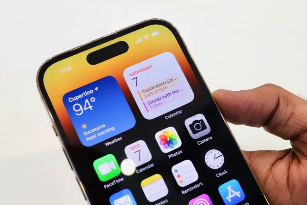 iPhone 14 Proの外見上の特徴として、画面上部にあったいわゆる『ノッチ』がなくなり、楕円形の『ホール』となった。しかし、巧みなのはこの穴を単なる穴とせずに、一種の通知領域、小ウィンドウとして、さまざまなサイズ、用途に変化させることで、そこに『穴』があることに気付かないようなデザインになっている。これは面白い。