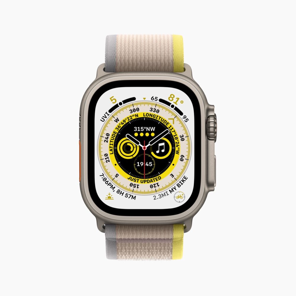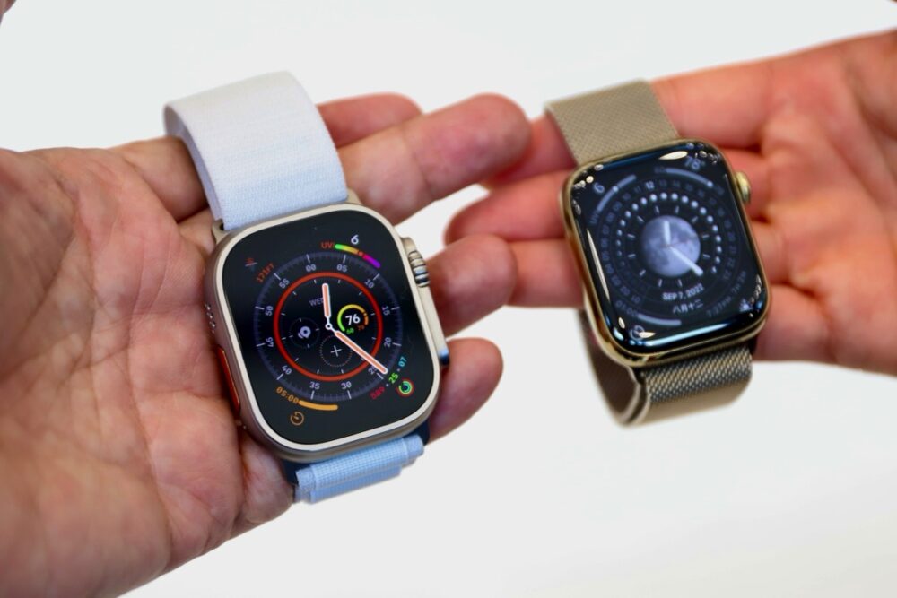 また、アウトドアでの活動となると周囲が明るすぎてディスプレイが見にくいことも多いが、Apple Watch Ultraのディスプレイは従来モデルの2倍明るい最大2,000ニトの輝度を誇る。