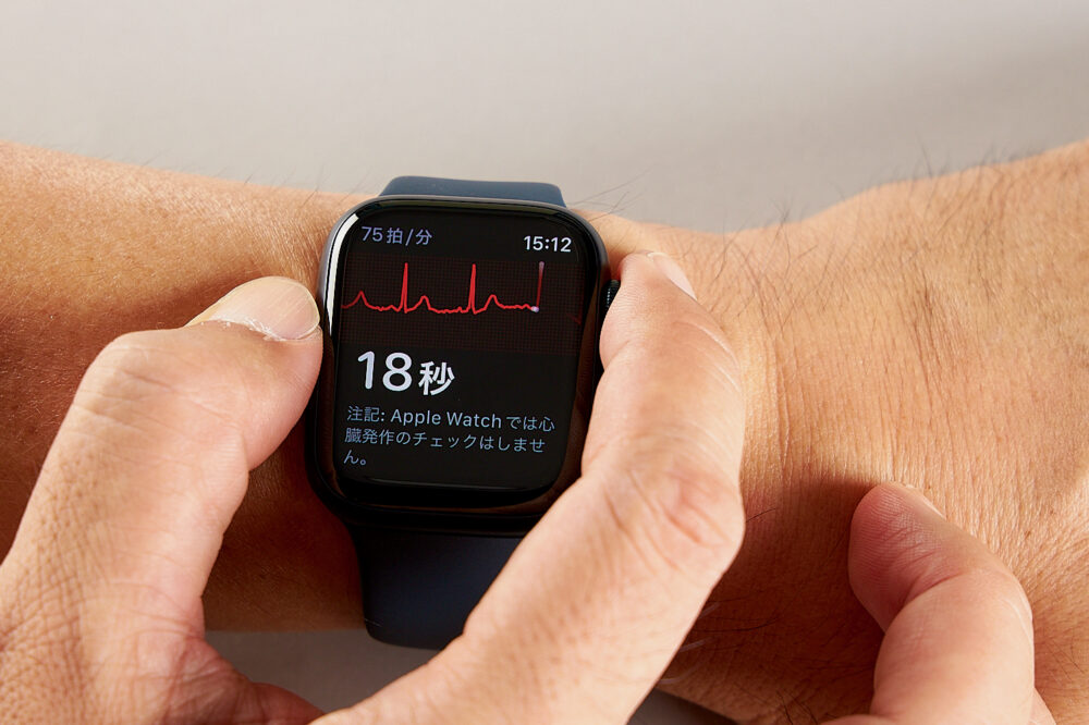 心拍はどちらでも取れるのだが、心電図も取得できる電気式の心拍センサーを備えているのがSeries 8。不整脈などのリスクを感知することができる。また心筋梗塞などの症状があった時にも、その場ですぐに心電図が取得できるメリットは大きい。