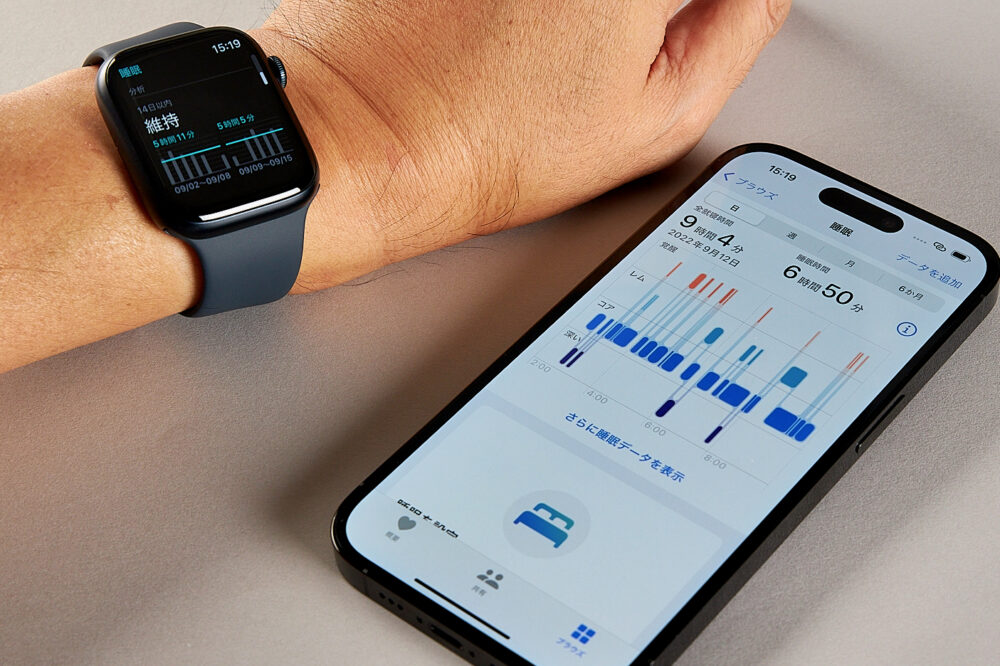 Series 8、SE2の機能ではないが、watchOS 9を搭載したApple Watchでは、睡眠のデータを取得することができる。