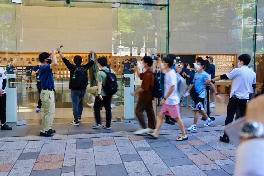 一応、報道向けの『iPhone行列』のパフォーマンスはあるが、基本的には粛々とウェブ予約で流通をこなしているという感じだった。定番の転売業者の方々も周辺には大勢いたが、何か対策があるのか入り込めていない様子だった。