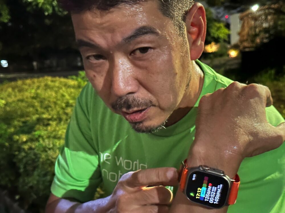 アクションボタンは非常に便利で、走りながらセクションを加えたり、一時停止したりするのがとても快適になった。頑張って走っている状態で、タッチパネルを操作するのが難しかったから、非常に嬉しい。アクションボタンは、普通のApple Watchにも装備して欲しい。