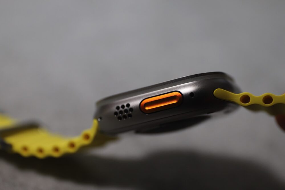 武骨なチタンが素敵。新しく、用途を自由に割り当てられる『アクションボタン』が用意されており、ワークアウトなどの時に非常に便利。スピーカーも大音量化されており、マイクも3マイクアレイ、ビームフォーミングで声の聞こえる方向にフォーカスして他の音をフィルタリングする機能が追加されている。