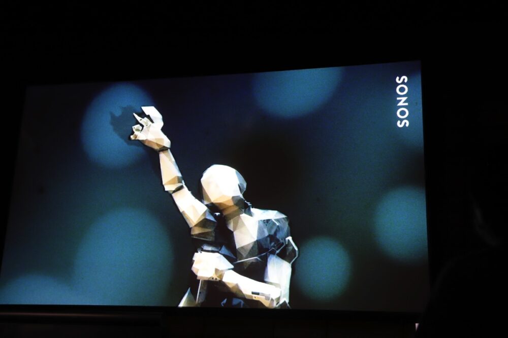 Sonosオーディオのデモンストレーションとして、上映された『Tokyo Mating Dance』という映像はRhizomatiksの真鍋大度さんによるもの。作曲はイガキアキコさん、作詞はUAさん、作曲・編曲はノサッシングさん。
