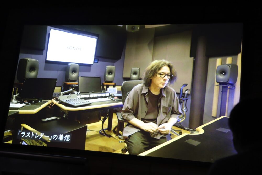 また、映画監督の岩井俊二さんからのビデオメッセージも披露された。映画『ラストレター』の中で、ひぐらしの鳴き声が環境音として広がる場面、クリアに聞こえる福山雅治さんと松たか子さんのセリフ、通り過ぎ、遠ざかるバスの音の移動するサラウンド感覚など、Sonosシステムを使っての聞き所を説明、体験させてもらった。