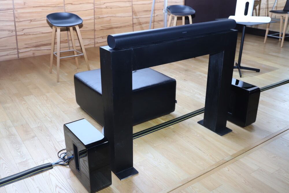 そこで使われていたのは、正面にArc、そのすぐ横にウーファーとしてSubを2台。そして、背後にサラウンドスピーカーとしてFiveを2台という構成だった。現在の価格でいえば45万9000円になるが、この広い会場の音響がその価格でカバーできるというのはむしろ驚きかもしれない。