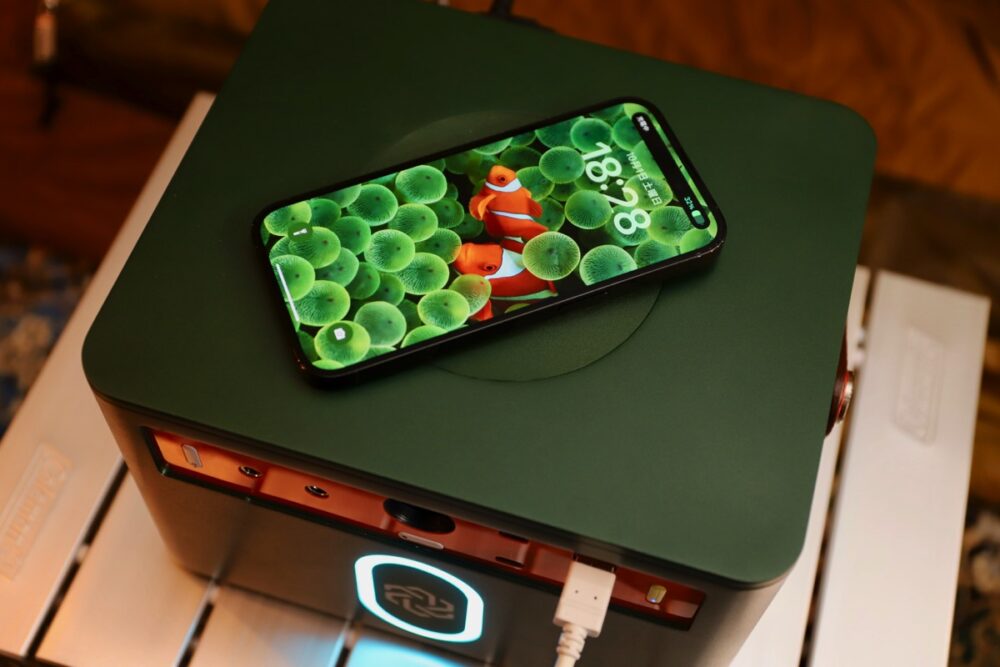 上面には、ワイヤレス充電装置が用意され、iPhoneなどを充電することができる。