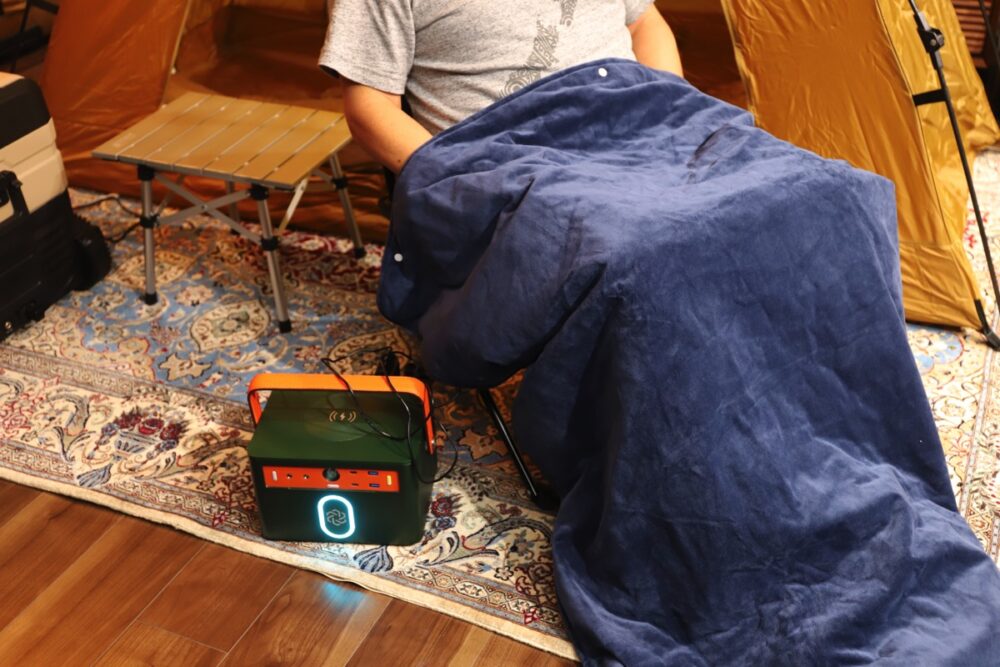 熱を発生する家電は600Wを超えるものが多いが、アウトドア用の電気毛布は問題なく利用できる。秋になると標高が高い場所にあるキャンプ場は夜に想像以上に冷え込むことがある。そんな時に電気毛布が1枚あると、どれほど助かることか。寝袋にかけて寝るのもいいかもしれない。