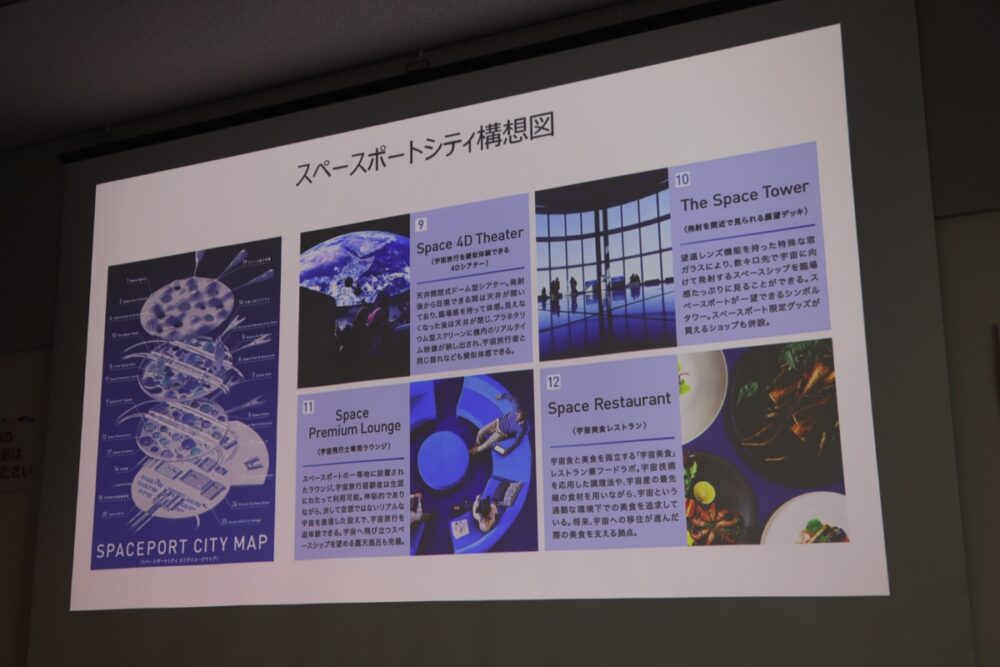 旅行代理店があり、宇宙を知るためのテーマパークがあり、宇宙船と同じ素材で作られたカプセルホテル、宇宙をテーマとしたアート作品を展示するミュージアム、プールや水族館、ジム、無重力ディスコ、宇宙食レストラン……などの関連施設とともに、スペースポートとしての施設を置こうという構想だ。