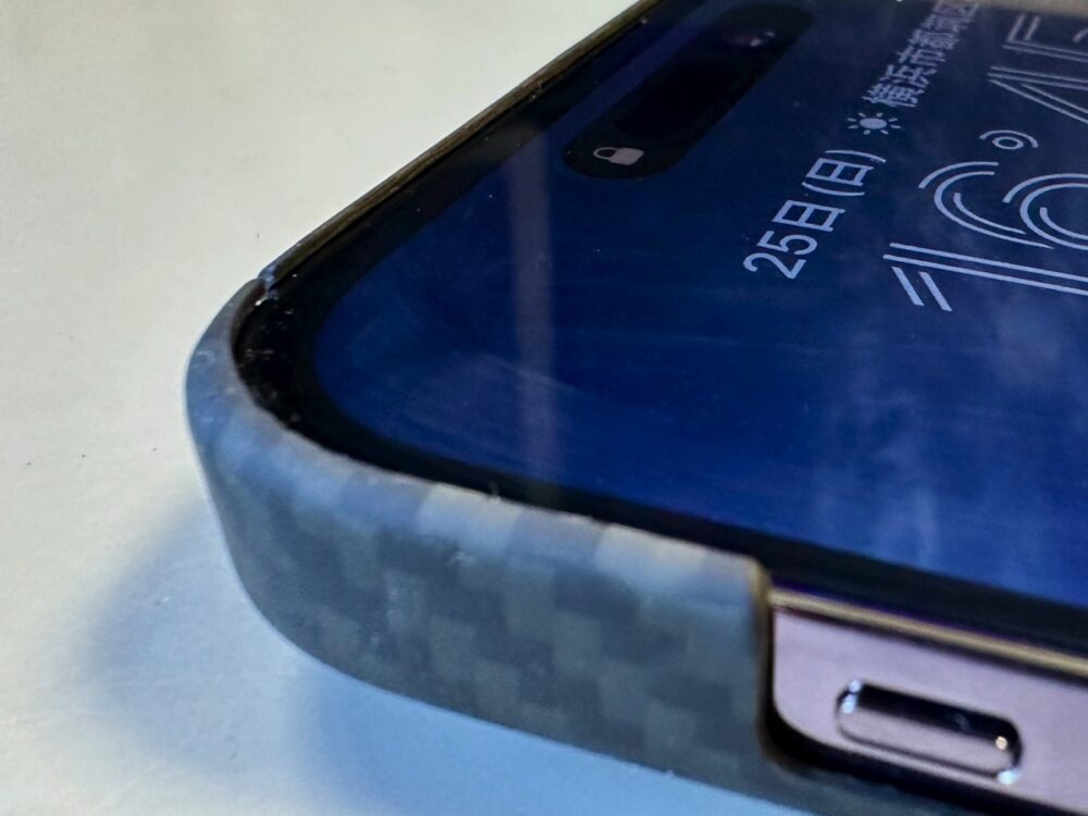 せっかく軽量なiPhoneを、装着することで大きく重くしてしまうケースも少なくないが、DeffのDUROは厚さわずか約0.65mm、重さは約11.5g(iPhone 14 Pro用)と超軽量。手にしっとり馴染む感じが素晴らしい。