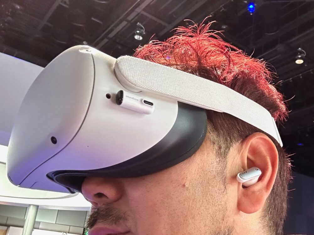 Soundcore VR P10は、Made for Meta認証取得のゲーミングイヤフォン。Meta Quest 2のUSB-Cコネクターに接続して、ワイヤレスで使用できる。レイテンシーは30msとのことで、ゲーマーの方でも満足できる反応速度を目指したという。
