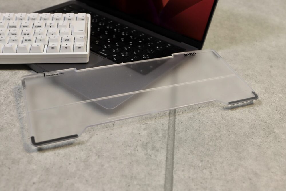 その尊師スタイルのために不可欠なのがバード電子のキーボードブリッジ。昨年10月には、従来のアクリル板を加工したものから、金型成型品になってより性能を向上させた。このバード電子のキーボードブリッジに、HHKBの新型である『雪』にマッチしたカラー『フリーザー』が発売された。