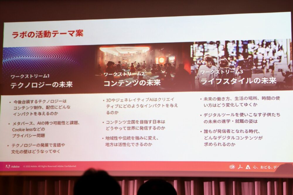 アドビの日本市場での注力テーマは『デジタル人材』『デジタルエコノミー』『デジタルトラスト』ということで、日本のクリエイター、マーケターの力を解き放ち、わくわくする日本のデジタル社会の未来を描くために、本日『アドビ未来デジタルラボ』が設立された。