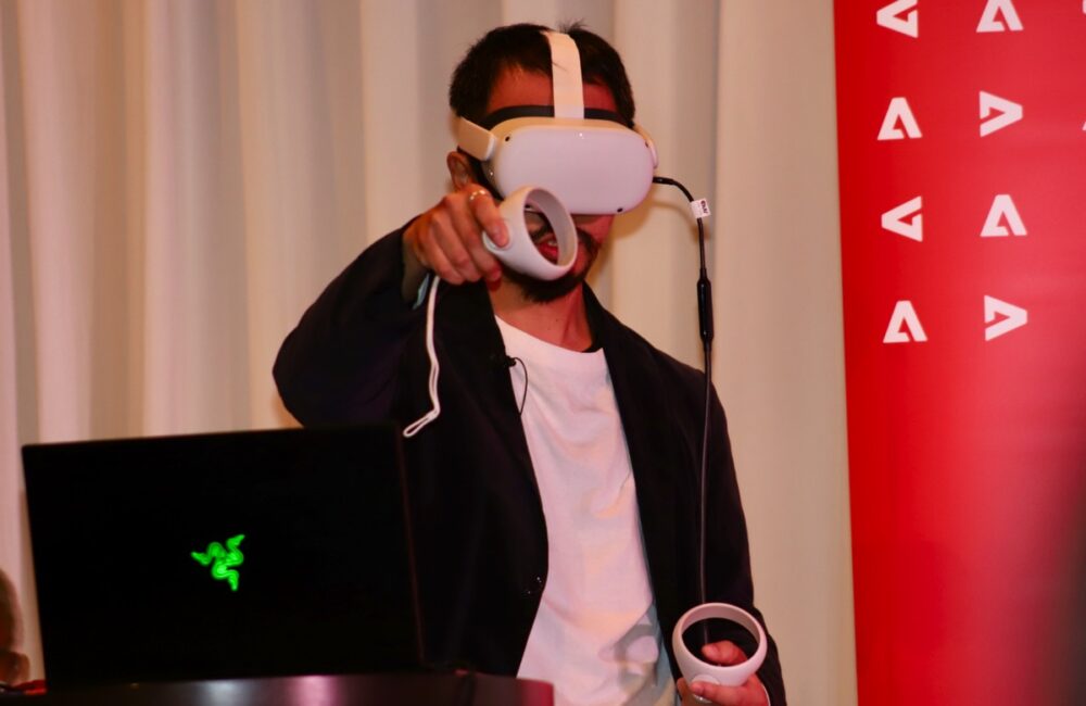 途中からはVRゴーグルを着けて、VR空間内でモデリングを行うデモが行われた。