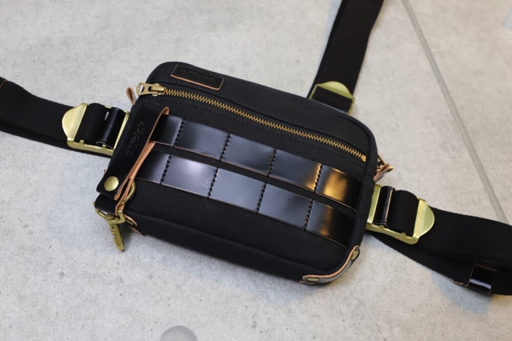 ファッションブランド『OFFICIAL』とのコラボアイテムで、ボディは帆布製、3本のベルトで身体に固定する方式。