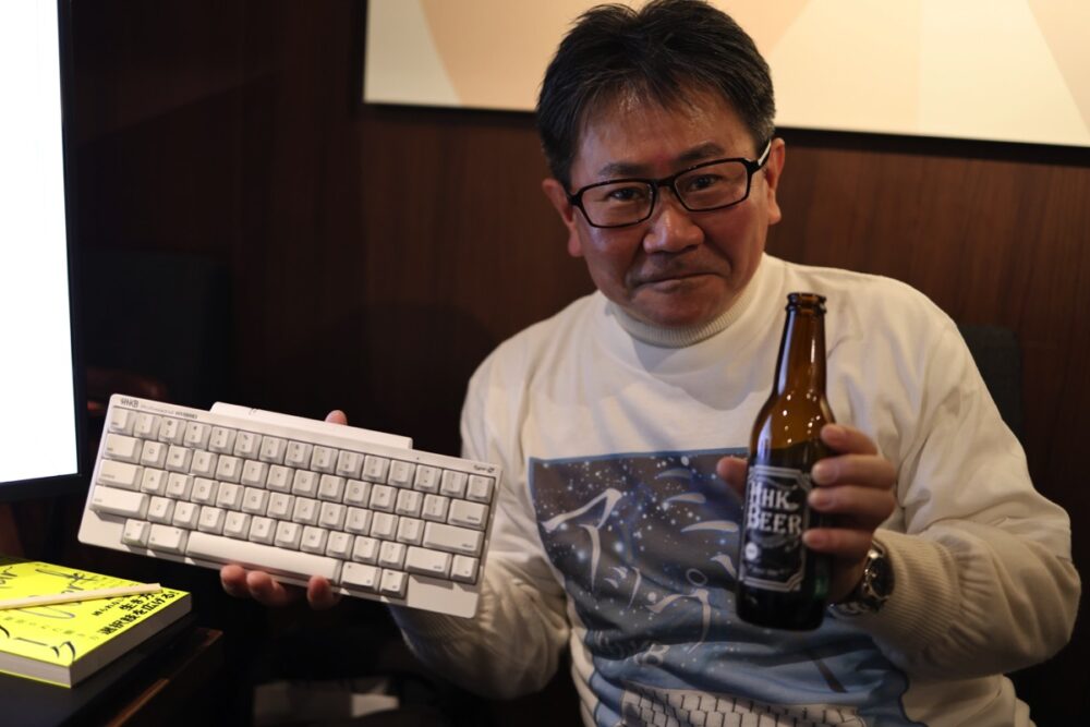 我々、原価バー組は、HHKBのチームを率いてきた松本秀樹さんと一緒に、原価バーでHHK BEERを飲みながら、You Tubeライブを観賞していた。