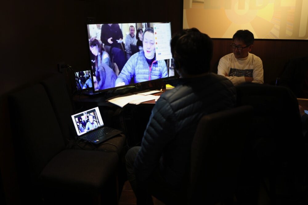 時々、中継が原価バー側に振られ、何人かのスペシャルゲストの方が話をされていた。これは清水亮さんがトーク中の場面。この様子は動画で、中継として見ることができる。