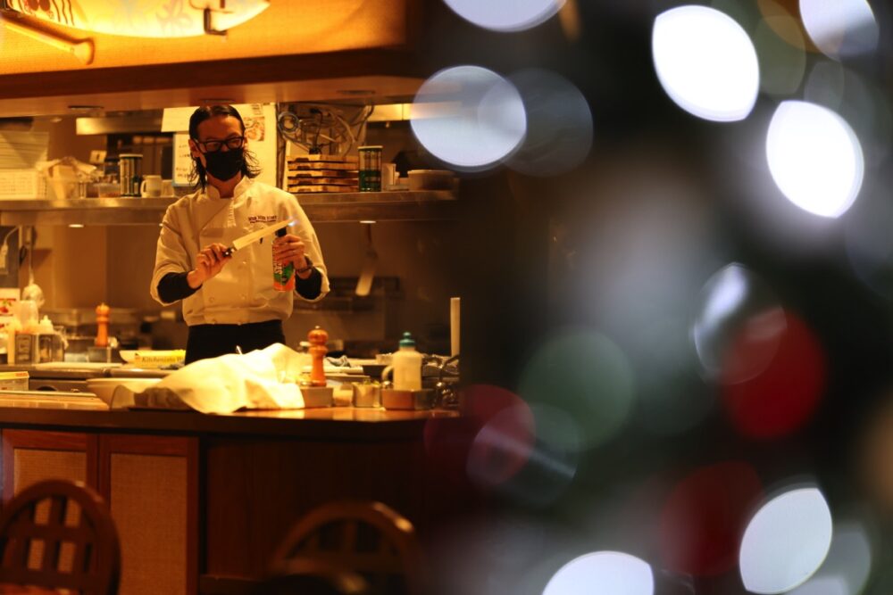 クリスマス前に、店内で働いている人を、テラス席から撮った。こういう何気ないカットでも、自動的に、人物、頭部、瞳に合焦するように頑張ってくれるのは本当にすごい。