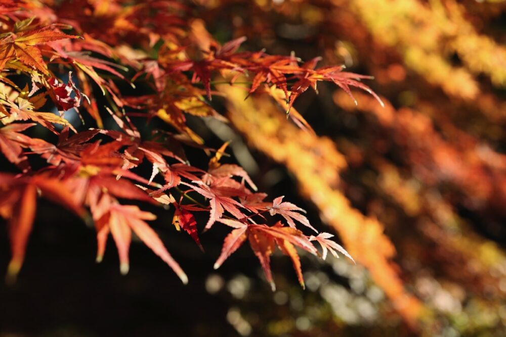 開放で撮ると、けっこうボケるので、ちょっと絞った方がいいこともある。この紅葉はF4.5まで絞ったもの。