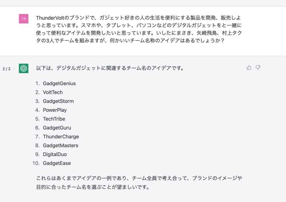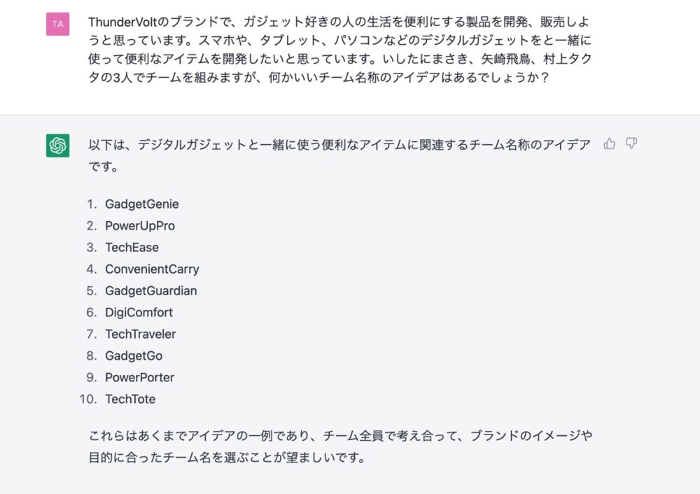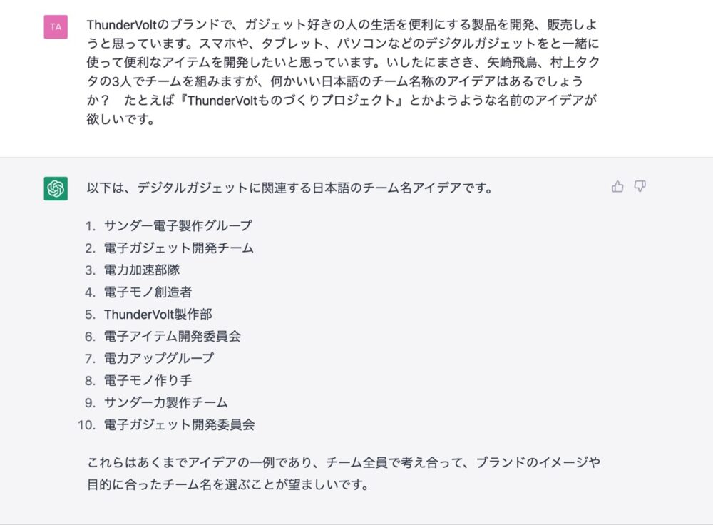 『サンダー電子製作グループ』とか『電子アイテム開発委員会』『電力アップグループ』とか面白い。というところで、このあたりのアイデアをまとめて、チャットに投げてみた。