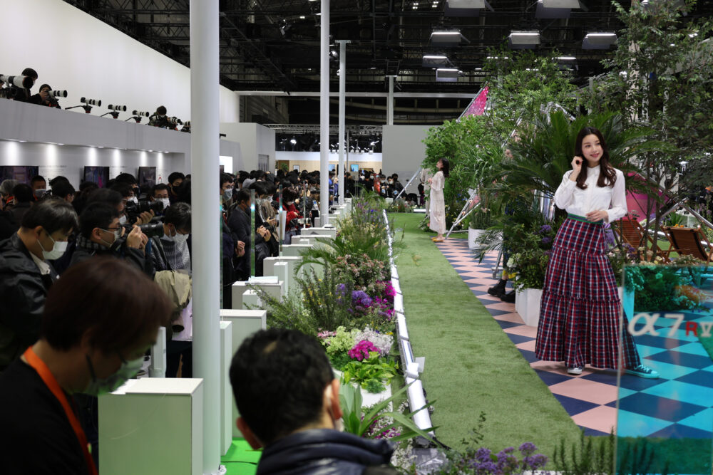 それを示すように、キヤノンはじめ大きなカメラメーカーには、アクティブスポーツを実演し、望遠レンズ、高速AFと、早い連写速度で、アクティブスポーツをの動きを止めることができるか試せるブースと、美しいモデルさんがしゃなりしゃなりと歩いて、明るいF値でピントの浅いレンズでも瞳AFがいかに素早く動作して、目にカッキリとピントが来て、背景が美しくボケるかを試せるブースが設けられていた。モデル撮影を体験できるのも、CP+の魅力ということだろう。