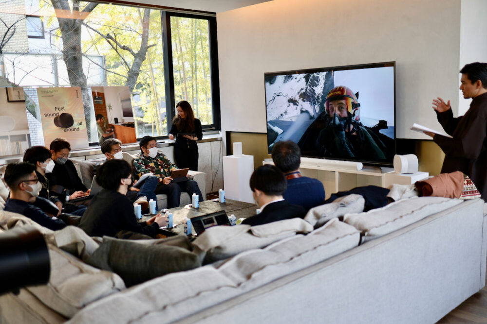 天面に設けられたツイーターは天井の反響を使って空間オーディオを実現する。最新の音響空間がマッピングされた音楽を聞くと、左右だけでなく上下の定位も感じることができる。
