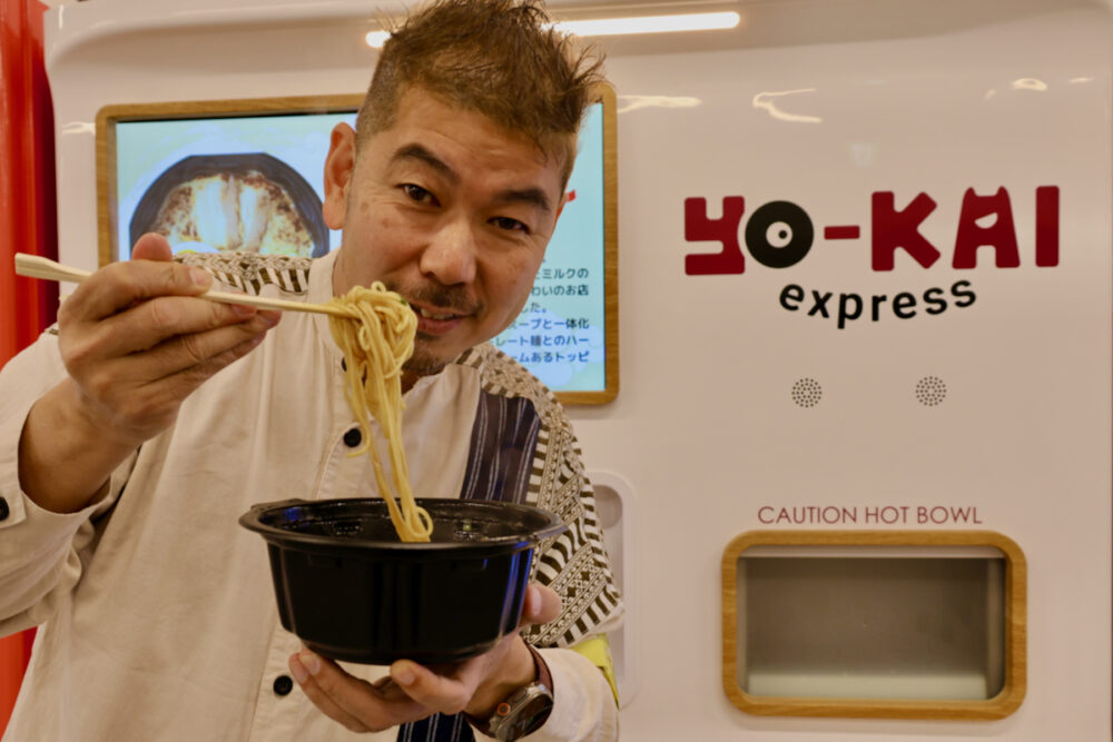 無論、店舗で提供されているものとまったく同じとまではいえないが、インスタントラーメンや、昔ながらの自動販売機とはまったく違う。調理工場で途中まで作って冷凍されたラーメンを、Yo-Kai Expressの自動調理ロボットが仕上げるので、かなりのレベルで店舗で食べるレベルに迫っている。