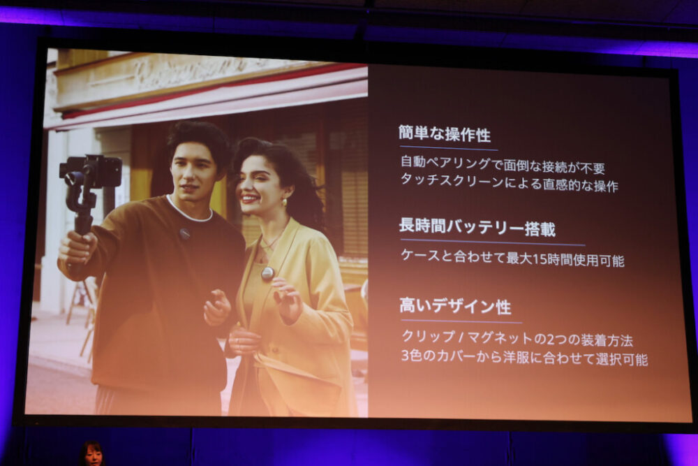 単体で最大6時間、ケースを使って充電することで15時間の使用が可能だという。YouTube、TikTok、Instagramなどの動画撮影に必需品になりそうだ。