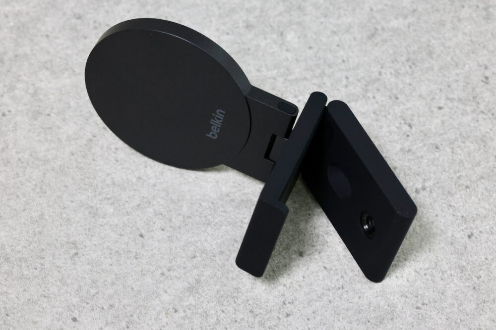 使ってみると、ご覧のように、非常に安定してiPhoneをホールドできている。MagSafeなので、iPhoneの付け外しも一瞬だし、MagSafe対応のケースを使っていれば、ケースを付けたままでも使えるので、至れり尽くせりだ。