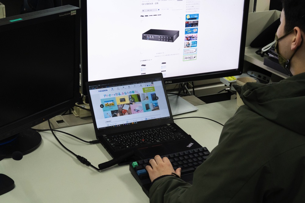 石川県にはPFU以外にもIT系の企業が数多くあるのだが、コンピュータ周辺機器メーカーであるアイ・オー・データ機器(以下、アイ・オー・データ)もそのひとつ。アイ・オー・データでは多くのエンジニアが自分の好みのキーボードを使っていらっしゃるのだが、中でもHHKBを使う方がとても多いとのことなので、話を聞いてみた。