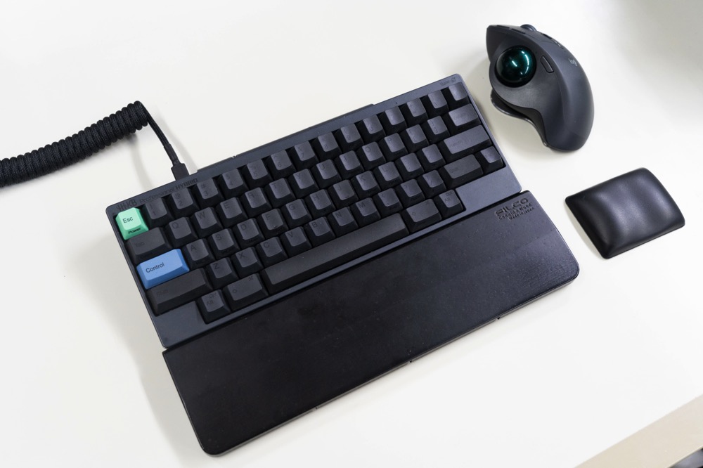 パームレストはFILCO社製。マウスもLogicoolのトラックボールMX ERGOとマニアックなものを使われてる。