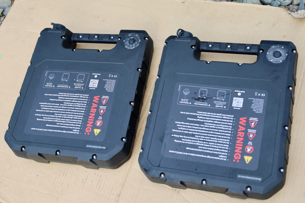バッテリーは、43.2V 35Ah出力のものを2個搭載する。つまりは合計3,024Whだ。巡航速度は15km/h以上(滑走時)。