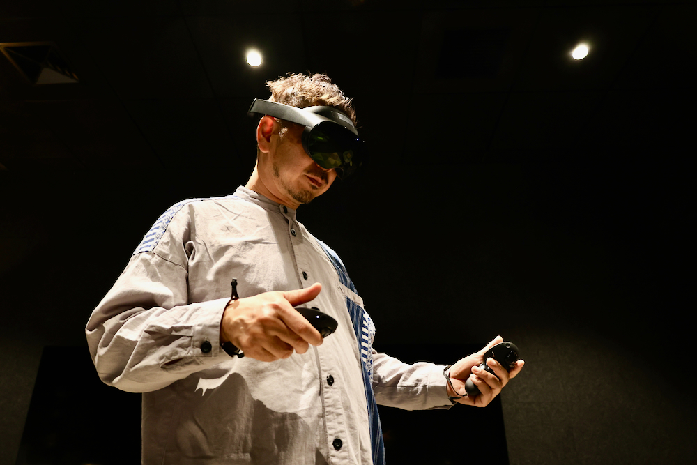 また、Quest ProはQuest 2よりはるかに高精度で、解像度の高いカメラを外部に持っており、VR空間の映像をMR映像として、表示することができる。